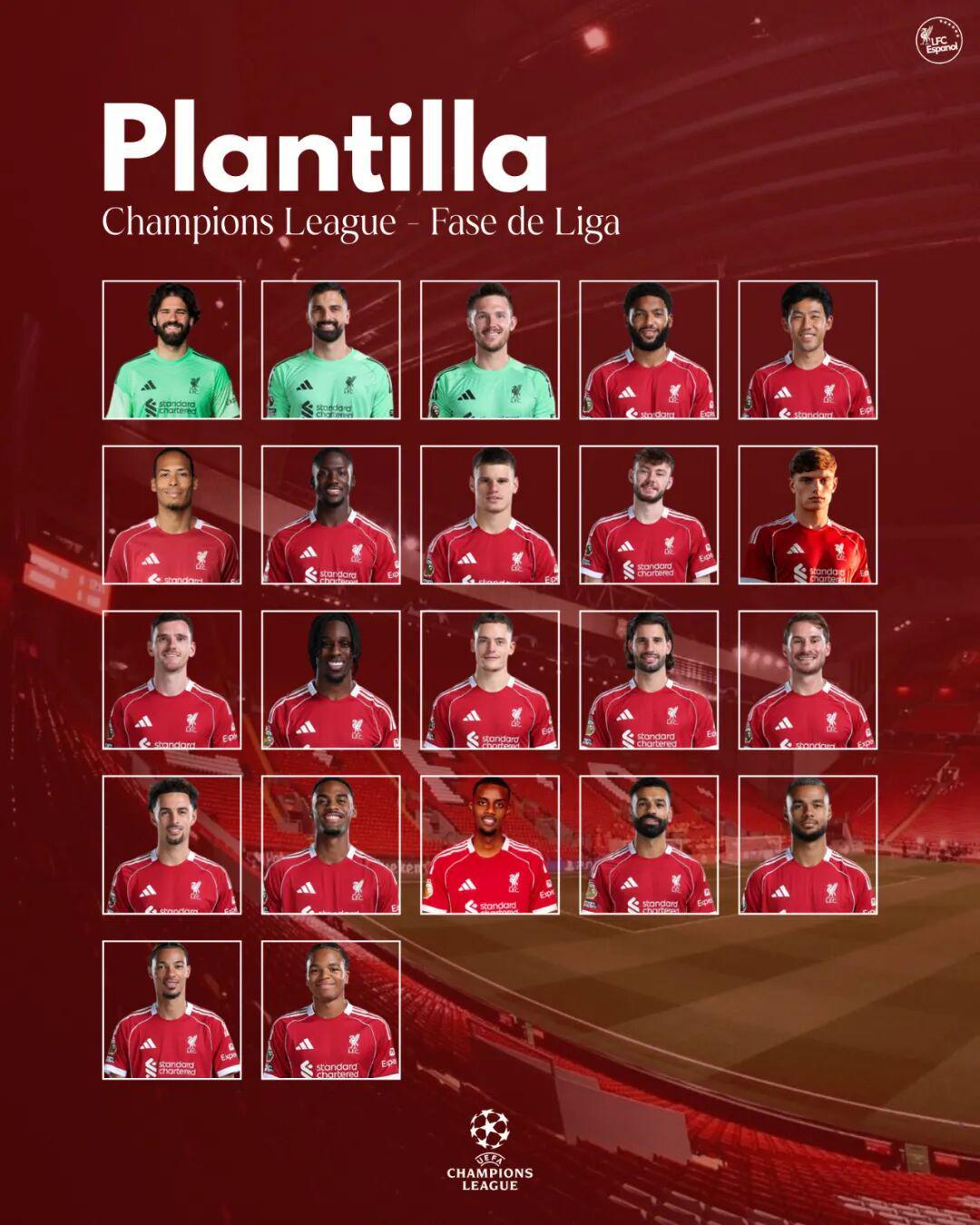 阵容豪华!利物浦公布欧冠大名单 基耶萨遗憾落选